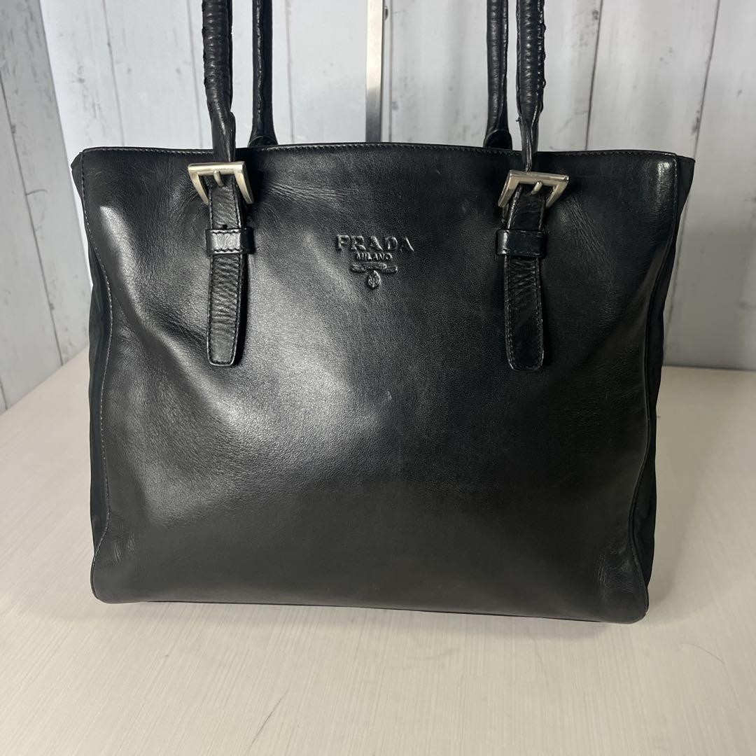 Prada Leather Tote Bag Shoulder Black Nylon Logo Embossed Used Key Features - Brand: Prada - Product: Unisex Leather and Nylon Tote Handbag - Model: Not specified - Features: Black color, large capacity, silver hardware, logo plate, logo embossing, interior patterned lining - Dimensions: approximately 12.6 inches (32 cm) wide, 10.6 inches (27 cm) high, 3.5 inches (9 cm) depth, shoulder strap about 31.5-33.5 inches (80-85 cm) - Material: Leather on front and back, nylon on sides - Condition: Used with minor signs of wear, small scratches and wrinkles on surface, slight corner scuffs, overall clean and functional - No accessories are included unless noted in the title or product description. If you have any questions, please ask before purchasing. Specifications Brand Prada Country Japan Exterior Material Leather Style Tote Bag Exterior Color Black Pattern Logo Accents Logo Color Black Material Nylon Product Description Item Title Prada Leather Tote Bag Shoulder Embossed Logo Payment Supports managed payments Please pay within 5 days after auction is finished. About Us We are located in Japan. It's our pleasure to make you happy by proposing our recommend item. If you have any questions or request about items, please feel free to ask us. International Buyers - Please Note: -Import duties, taxes, and charges are not included in the item price or shipping charges. These charges are the buyer's responsibility. -Please check with your country's customs office to determine what these additional costs will be prior to bidding/buying. -These charges are normally collected by the delivering freight (shipping) company or when you pick the item up - do not confuse them for additional shipping charges. -We do not mark merchandise values below value or mark items as - gifts - The US and International government regulations prohibit such behavior. Thank you for your understanding.