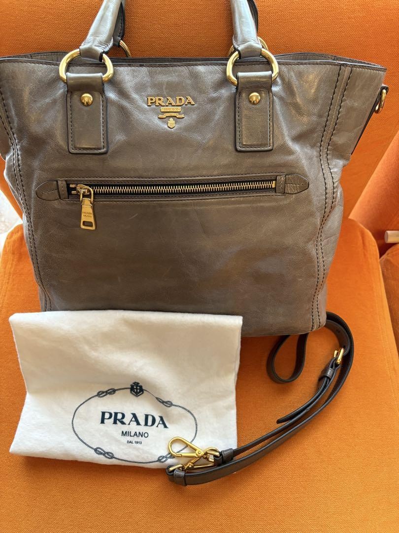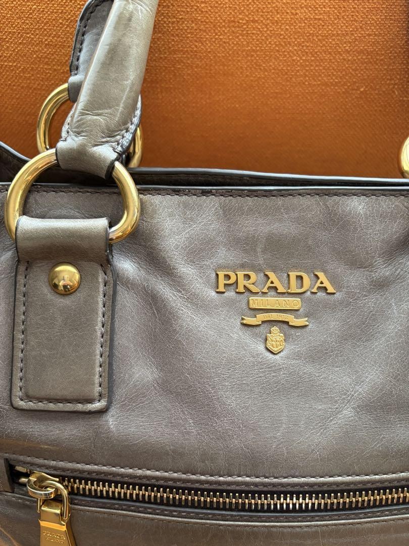 Wow, this Prada tote is a total game-changer! The leather feels incredibly luxurious and durable, and I love how versatile it is—perfect as a shoulder bag or a handbag. It's surprisingly roomy, easily fitting my A4 documents and more. The chic gray color and gold hardware make it a stunning, elegant accessory for any outfit. An absolute must-have!