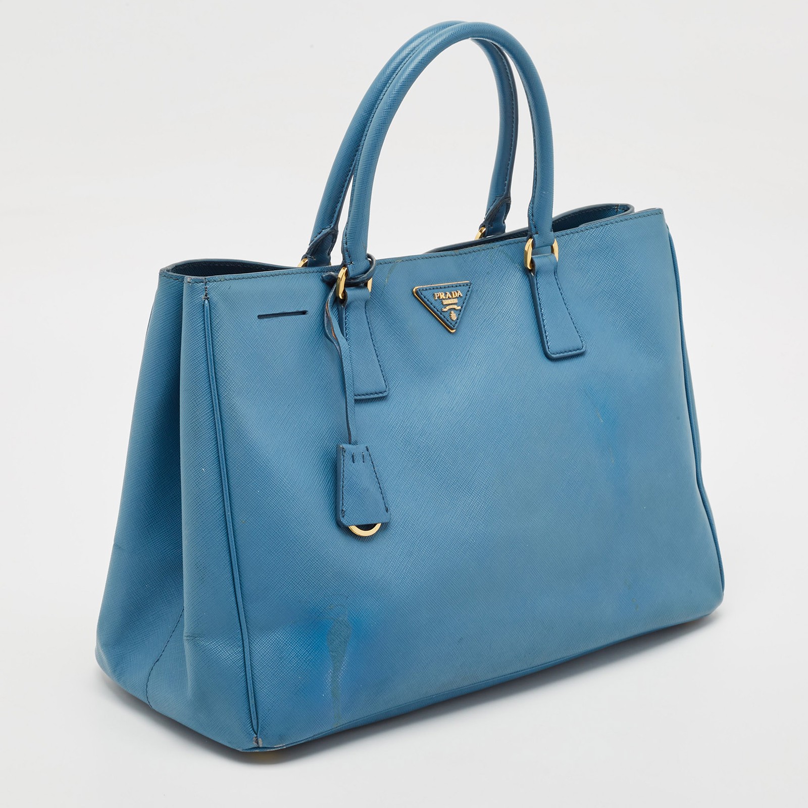 This alluring Prada tote bag for women has been designed to assist you on any day. Convenient to carry and fashionably designed, the tote is cut with skill and sewn into a great shape. It is well equipped to be a reliable accessory.Certified by The Luxury Closet - This item has gone through a detailed authentication process overseen by our experts. We offer a lifetime guarantee of authenticity on all our items. Import duties, taxes and charges are not included in the item price. These charges are the buyers responsibility. Please check with your country’s customs office to determine what these additional cost will be prior to buying. Our eBay Store About Us Contact Us Add to Favorite Sellers Prada Light Blue Saffiano Lux Leather Large Gardener's Tote $544.5 This alluring Prada tote bag for women has been designed to assist you on any day. Convenient to carry and fashionably designed, the tote is cut with skill and sewn into a great shape. It is well equipped to be a reliable accessory. Product Details Brand Color Blue Dimensions Height: 26 cm, Width: 17.5 cm, Length: 38 cm Material Leather Size Outsole Width Outsole Length Heel Height Includes The Luxury Closet Packaging Certified by The Luxury Closet This item has gone through a detailed authentication process overseen by our experts. We offer a lifetime guarantee of authenticity on all our items. How We Check The in-house team of experts at The Luxury Closet is highly trained to verify the authenticity and the condition of the luxury products. They ensure that only 100% authentic items are put on sale.The evaluation process is unique with its own mix of assessment criteria and differs according to the category. Each item is evaluated based on the following combination of hallmarks, hardware, stitching, symmetry, material, craftsmanship, stamping, codes, hologram stickers, and packaging. Our authenticators also check if the items have been modified or amended (e.g., aftermarket diamonds, replaced batteries, repaired bags, etc.) International Buyers Import duties, taxes and charges are not included in the item price. These charges are the buyers responsibility. Please check with your country’s customs office to determine what these additional cost will be prior to buying.