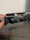 The Prada Sunglasses are a stylish accessory designed for women, featuring a solid black frame with tinted gray lenses. Made in Italy, these designer sunglasses offer UVA protection and have a square shape, adding a trendy touch to any outfit. The plastic frame and lenses provide durability and comfort for everyday wear, making them a must-have for any fashion-forward woman looking to elevate her look with a touch of luxury.