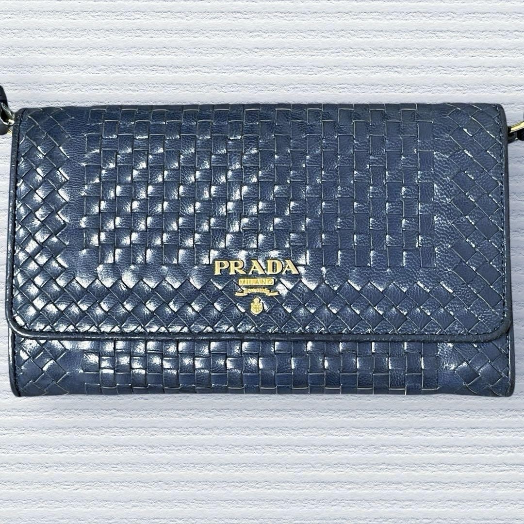 Prada Madras Woven Crossbody Shoulder Wallet Adjustable Angle Made in Japan