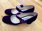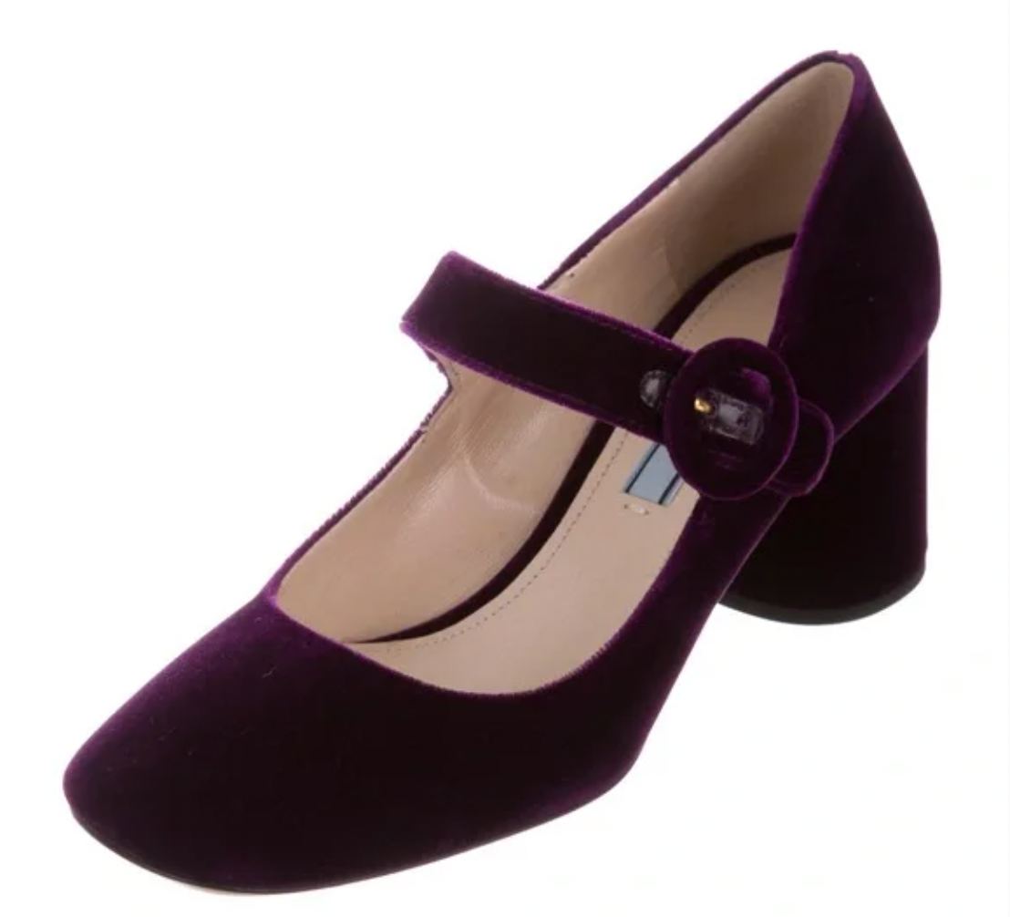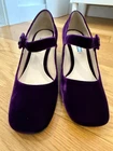 NEVER WORN, PRISTINE CONDITION BOX AND DUST BAGS INCLUDED Currently for sale USED for aprox $300 Purple soft velvetLeather TrimSquare-ToesMary Jane Strap; Buckle Closure At Uppers.Designer Fit: Pumps by Prada typically run a half size smallHeels: 2.75"