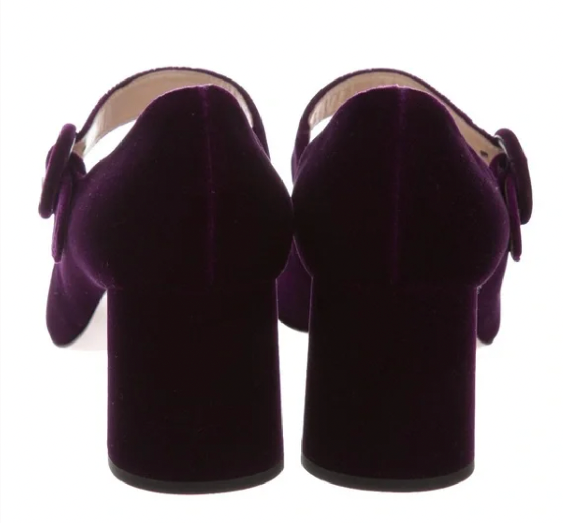 Absolutely stunning Prada Mary Janes in gorgeous purple velvet! The square toe and block heel give them a modern yet timeless look. They’re brand new, never worn, and come with the original box and dust bags—such a steal at this price. The 2.75-inch heel is perfect for all-day wear, and the leather trim adds a luxe touch. Runs half a size small, so sizing up is a must. Love these!