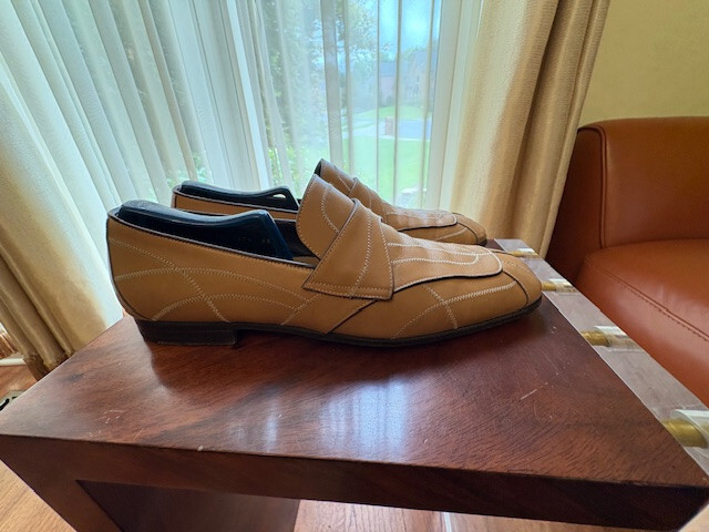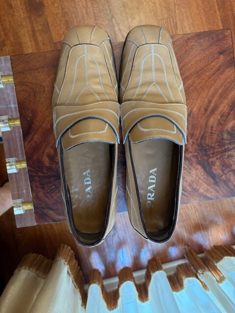 Prada Mens Beige Shoes Leather Loafers Sz. UK 6.5 US 7.5/8 EU 40.5 Very Good condition: worn only few times (stored on cedar shoe-trees) Please see other Auctions for Valentino & Fendi shoes