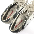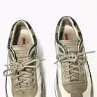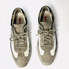 Prada Men’s Gray White Suede Sneakers Size 9. Condition is Pre-owned. Shipped with USPS Ground Advantage.