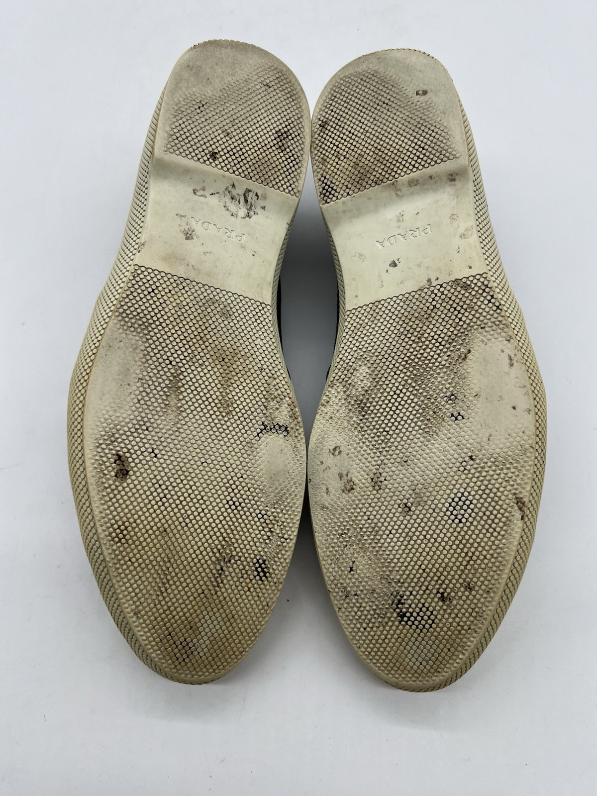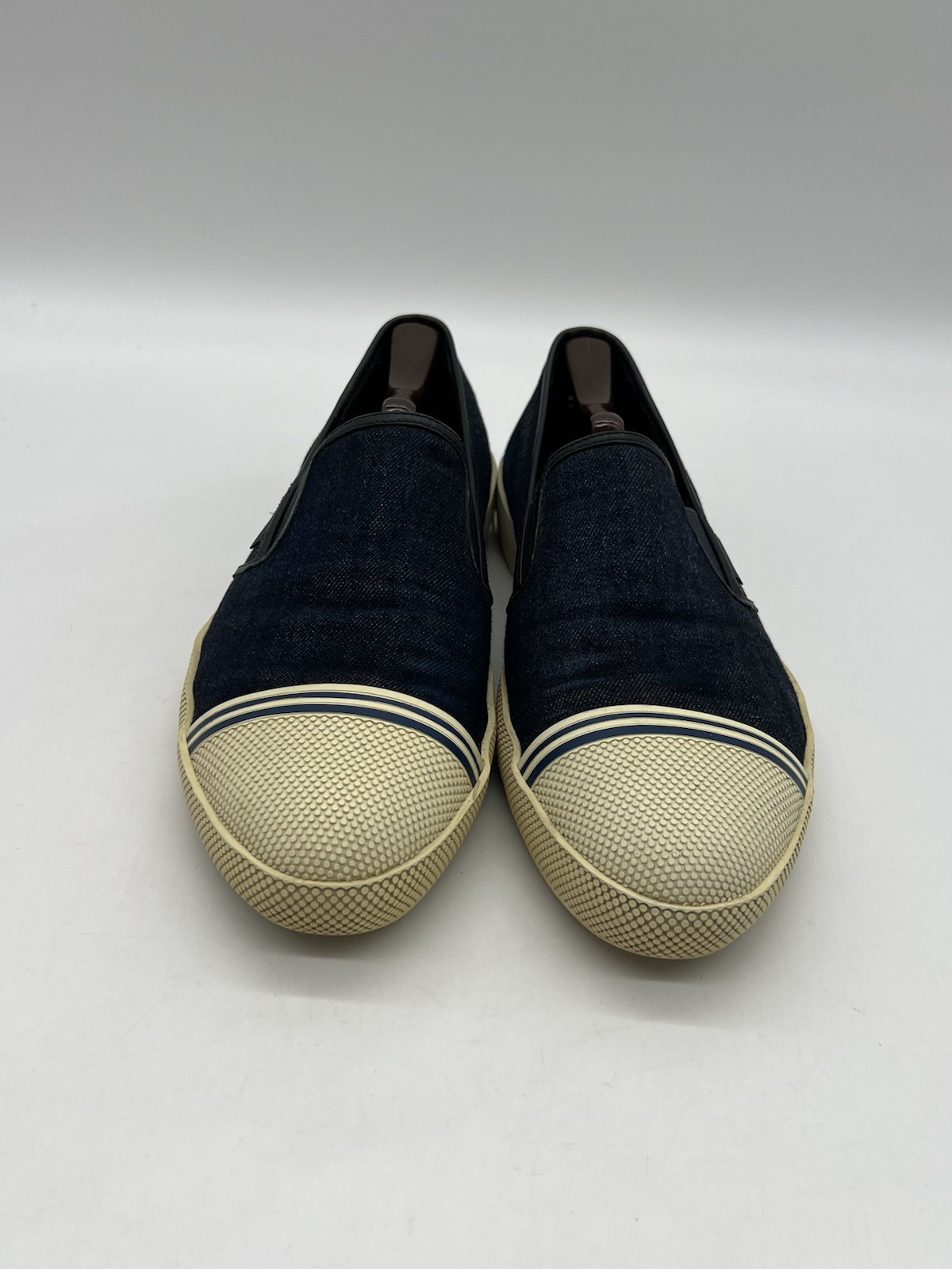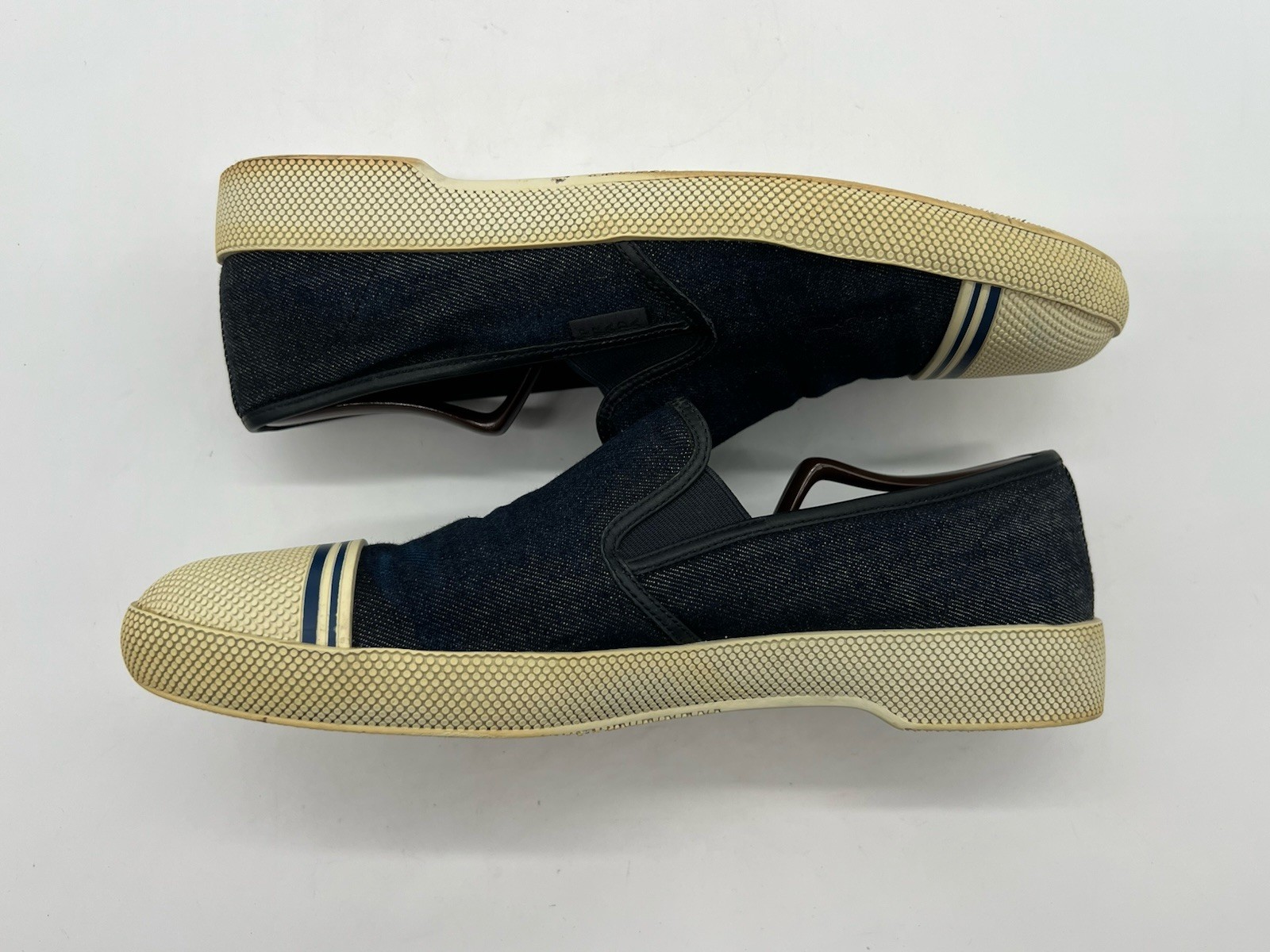 Prada Men’s Sz 9 Sz US 10 Blue Denim Casual Slip On Loafers Fashion Sneakers. Shoes are in used condition and have signs of wear but shoes are still in great condition. Upper material is in great condition and clean , inside is clean and the soles are in great condition. Nice comfortable shoes for casual wear. Condition is pre-owned. Shipped with ups or usps priority mail. Sold as pictures. Thank you! Feel free to message me for any questions. Thank you