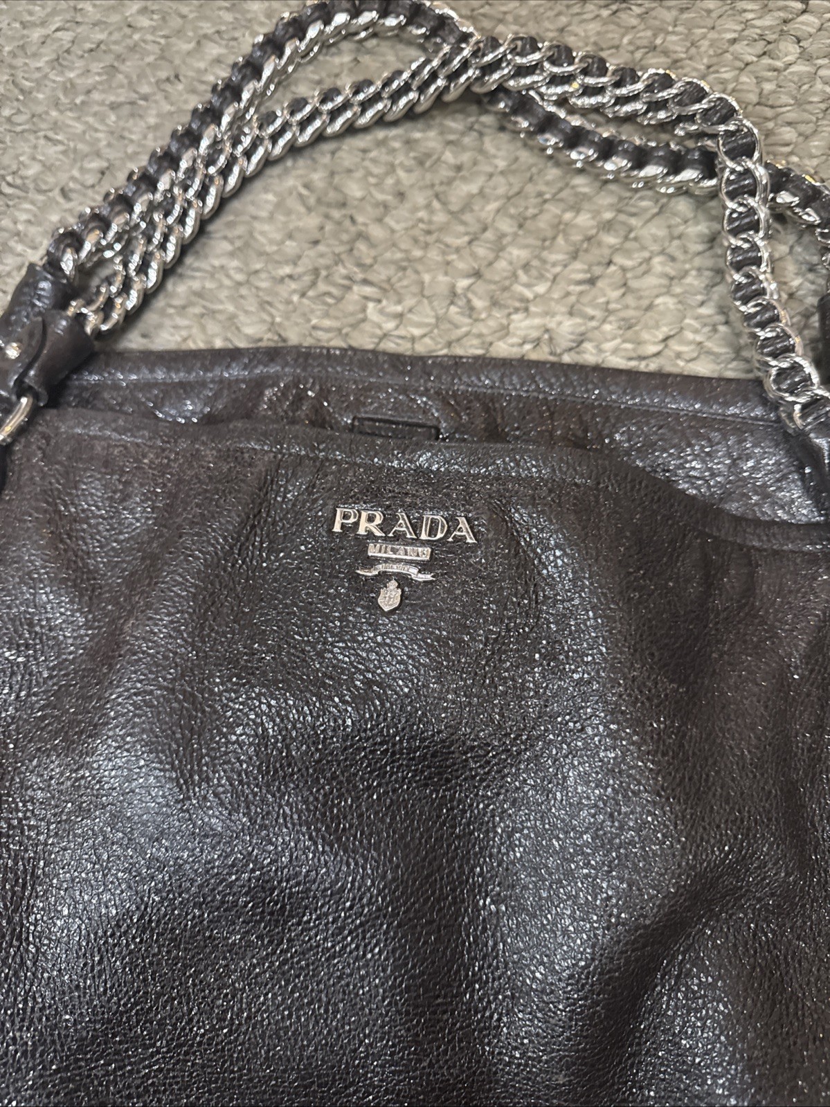 This bag is a total showstopper! The distressed brown leather gives it a cool, vintage vibe, while the shiny finish and chunky chain add modern luxury. It’s surprisingly spacious, perfect for daily essentials, and the Prada branding makes it instantly recognizable. The craftsmanship is impeccable—every detail feels premium. Whether dressed up or down, it instantly elevates any look. A must-have for anyone who loves high-end style with an edge. Worth every penny!