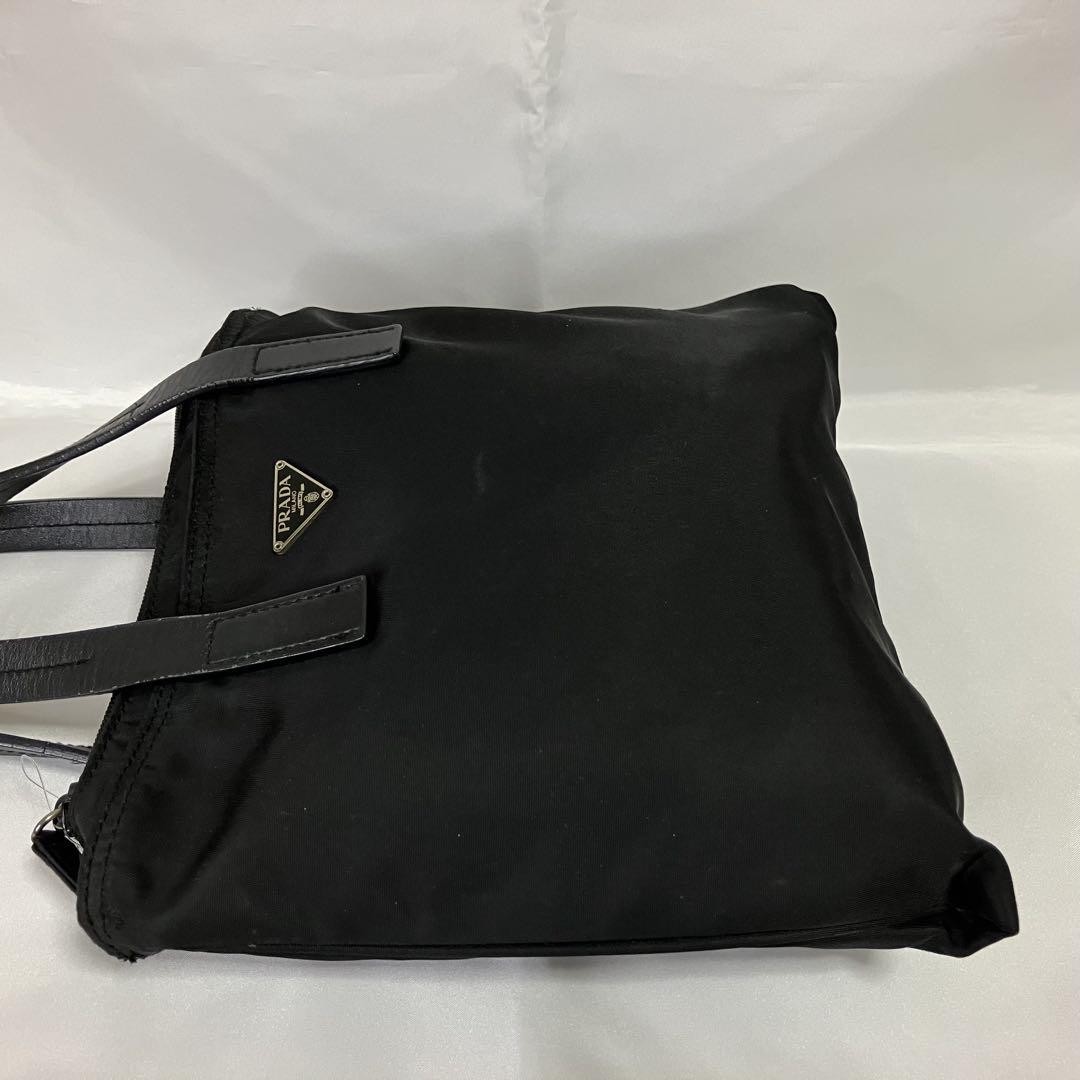 PRADA nylon mini handbag in black. Size (approximately): Width 9.45 inches x Height 8.66 inches x Depth 1.57 inches, Handle width approximately 4.33 inches. Accessories: Product only. There are some scuffs on the exterior surface and handle, and small cracks on the handle (no major cracks or tears). There are no tears inside, so it can be used for regular use. I promise fast shipping via FedEx or DHL as soon as possible! Import duties, taxes and charges are not included in the item price or shipping charges. These charges are the buyer’s responsibility. These charges are normally collected by the delivering freight (shipping) company or when you pick the item up - do not confuse them for additional shipping charges.