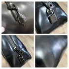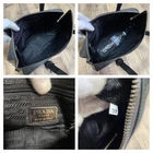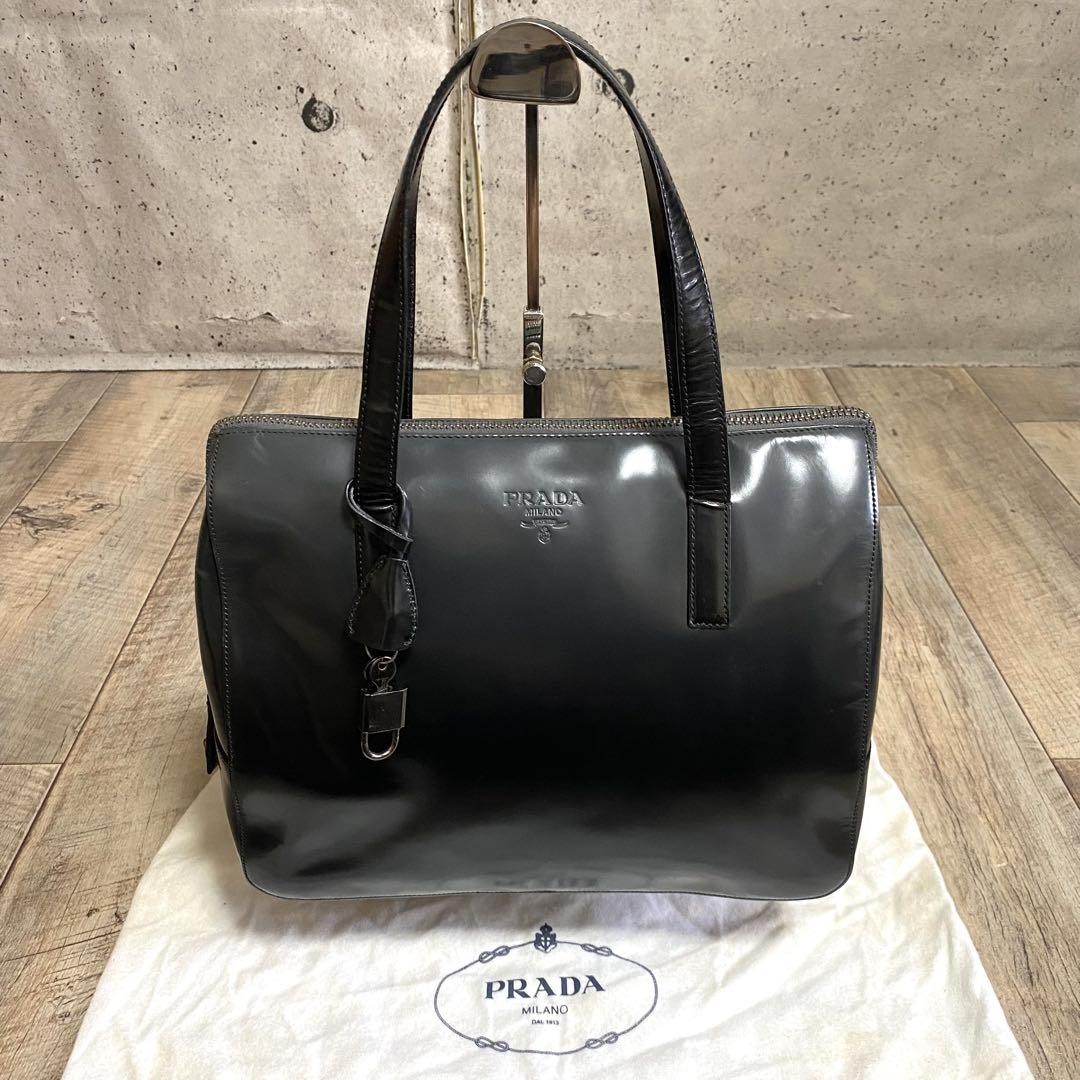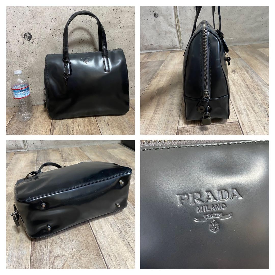 PRADA handbag, tote bag, mini Boston bag made of black/gray gradient enamel leather. Size: Approximately 10.04 inches in height, 11.81 inches in width, 4.53 inches in depth, and 7.09 inches in handle height. The body has signs of use such as scratches, stains, dullness, and deformation. There are scuffs on the handles, edges, and corners. The interior has signs of use but is in relatively good condition. Includes a padlock & key and a storage bag with stains. I promise fast shipping via FedEx or DHL as soon as possible! Import duties, taxes and charges are not included in the item price or shipping charges. These charges are the buyer’s responsibility. These charges are normally collected by the delivering freight (shipping) company or when you pick the item up - do not confuse them for additional shipping charges.