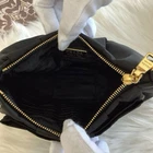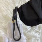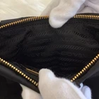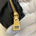 Absolutely love this chic Prada pouch! The black nylon is sleek and durable, with the gold logo adding a touch of luxury. It arrived in excellent condition, just as described. Perfect size for essentials and the ribbon motif is so stylish. Highly recommend!