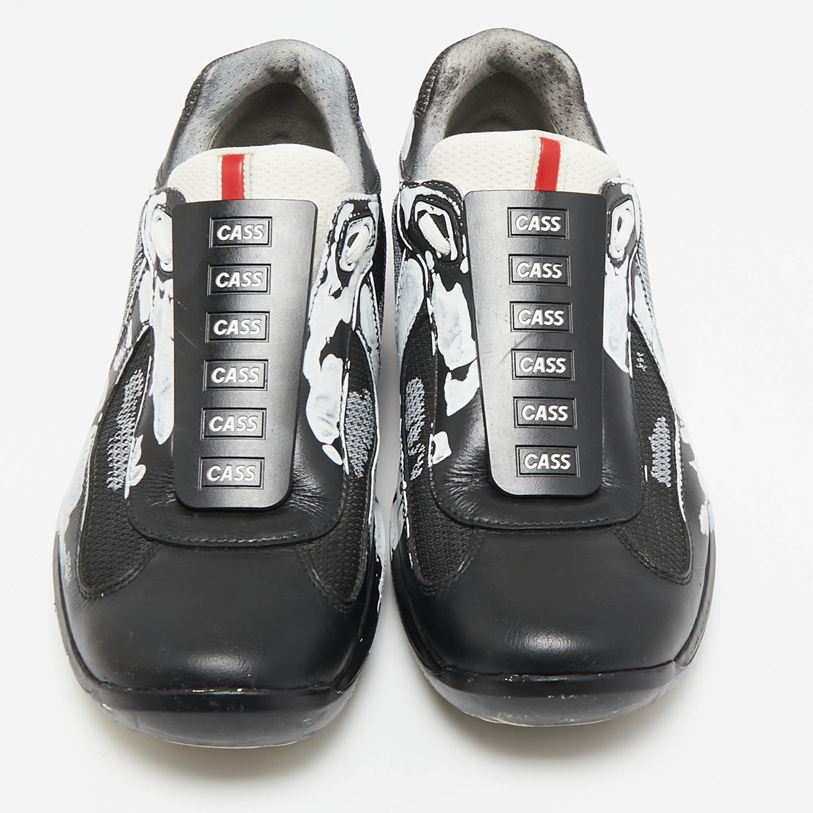 The Prada sneakers offer a vibrant blend of colors and materials, combining sleek leather with breathable mesh. The bold, sporty design is elevated with unique color blocking and subtle branding, making these sneakers perfect for those looking for something stylish yet functional.Certified by The Luxury Closet - This item has gone through a detailed authentication process overseen by our experts. We offer a lifetime guarantee of authenticity on all our items. Import duties, taxes and charges are not included in the item price. These charges are the buyers responsibility. Please check with your country’s customs office to determine what these additional cost will be prior to buying. Our eBay Store About Us Contact Us Add to Favorite Sellers Prada Multicolor Leather and Mesh America's Lace Up Sneakers Size 37.5 $451 The Prada sneakers offer a vibrant blend of colors and materials, combining sleek leather with breathable mesh. The bold, sporty design is elevated with unique color blocking and subtle branding, making these sneakers perfect for those looking for something stylish yet functional. Product Details Brand Color Multicolor Dimensions Material Leather, Mesh Size 37.5 Outsole Width 10 cm Outsole Length 30 cm Heel Height Includes The Luxury Closet Packaging Certified by The Luxury Closet This item has gone through a detailed authentication process overseen by our experts. We offer a lifetime guarantee of authenticity on all our items. How We Check The in-house team of experts at The Luxury Closet is highly trained to verify the authenticity and the condition of the luxury products. They ensure that only 100% authentic items are put on sale.The evaluation process is unique with its own mix of assessment criteria and differs according to the category. Each item is evaluated based on the following combination of hallmarks, hardware, stitching, symmetry, material, craftsmanship, stamping, codes, hologram stickers, and packaging. Our authenticators also check if the items have been modified or amended (e.g., aftermarket diamonds, replaced batteries, repaired bags, etc.) International Buyers Import duties, taxes and charges are not included in the item price. These charges are the buyers responsibility. Please check with your country’s customs office to determine what these additional cost will be prior to buying.