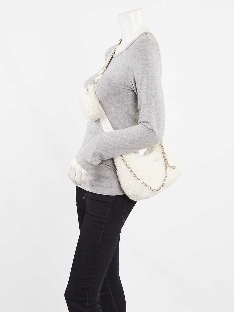Prada Naturale Wool Cashmere Shearling 2005 Re-Edition Shoulder Bag 1BH204 Description Get nostalgic with this throwback style bag from Prada. The 2005 Re-Edition mini bag is practical and sport with a fluffy wool cashmere body, leather trim and a casual wide nylon Prada embroidered shoulder strap. The bag comes with a chain handle and tine accessory pouch that attaches to the strap. You will love this cute little bag from Prada! Condition The exterior is clean and beautiful throughout. The hardware is bright and shiny. The strap is clean and the interior remains in excellent condition. Details Overall Condition: Like new Exterior Condition: Like new Interior Condition: Like new Includes: Dust bag, authenticity card, removable nylon strap, removable chain handle, removable coin pouch, clochette and key ring Material: Wool cashmere Handles: Single, wide nylon strap and a removable chain strap Closure/Opening: Single zip closure Interior Lining: Fine Prada logo jacquard textile lining Interior Pockets: Hardware: Silvertone Origin: Italy Production Year: Handle Drop: 16" adjustable, chain strap; 8.5" Measurements: 8.5" L x 2.5 W x 4.75" (from middle center) Date/Authenticity Code: N/A Guaranteed Authentic Only 100% authentic bags earn the tag! We guarantee the authenticity of every item we sell or 100% of your money back including original and return shipping costs. We're experts in distinguishing the "wanna-bes" from the "real deal." Whether it's a handbag or necklace, determining the authenticity of an item is a mix of art and science. Items such as stampings, symmetry, stitching, hardware, authenticity stamps, as well as overall workmanship and materials are inspected and determined to be consistent with the manufacturer's established standards of quality. If applicable, manufacturer date codes and serial numbers are verified for consistency. Lastly, the item is compared to on-hand authentic reference items. Payment We accept Paypal along with Visa, Mastercard, American Express, and Discover. We request full payment immediately upon purchase. Hassle-free Return Policy We guarantee the authenticity and condition of each item we sell. If you are not completely satisfied with your purchase, you may return it within 15 days of shipping date for a prompt refund. Hassle-free returns means that you don't have to contact us prior to returning an item. All we ask is that you do not remove the Authenticity Seal attached to your item and that you return the item in the condition you received it. We also ask that all original papers and box are returned. We cannot accept return items that do not meet this criteria. To return your order for a refund, please initiate the return within your eBay account. Within 2-3 business days upon receipt, you will be issued a refund for the original sales price and any taxes in the same form as the original payment method. Please note that this credit will not include any original shipping charges. Shipping Fees Our goal is to process your order quickly and ensure its safe delivery. We offer free shipping for all domestic orders and flat rate shipping fees for expedited and international orders regardless of how many items are in your order. Please note that we cannot ship to P.O. boxes. Shipping Method Fee per Order Standard (UPS Ground) FREE Expedited (UPS 2 Day) $15 APO/FPO, Alaska, and Hawaii (USPS Priority Insured) FREE Canada (USPS Priority Insured) $15 International (USPS Priority Insured) $15 International (USPS Express Insured) $25 About Us We know that shopping for new luxury goods at high-end retailers can be a luxurious and satisfying experience. We strive to deliver the same high quality experience and level of service for pre-owned goods. Never considered giving a pre-owned luxury item as a gift? Every order is presented and packaged to standards that match or exceed luxury retail stores and therefore make great gifts (especially if it's a gift for yourself!). For every order, take a look at what comes in the box: Professionally cleaned and rejuvenated luxury item with "Guaranteed Authentic by Yoogi's Closet" hang tag and seal. "Guaranteed Authentic by Yoogi's Closet" enclosure card. Care instructions and message from Yoogi. Invoice and return instructions. Original box, dustbag, and enclosed materials* * Note that select pre-owned merchandise will arrive with these items. Please refer to the product description page on the Yoogi's Closet website for details. Have Authentic Luxury Handbags or Jewelry to Sell? If you are having problems selling your authentic luxury handbag on eBay, we can help! We pay top dollar for quality, gently used luxury handbags. Learn more about our selling and consignment services.