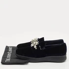 Slip into opulence with these Prada sneakers in plush navy velvet. Crystal embellishments add a dazzling twist to the sporty silhouette—perfect for off duty glamour with minimal effort.Certified by The Luxury Closet - This item has gone through a detailed authentication process overseen by our experts. We offer a lifetime guarantee of authenticity on all our items. Import duties, taxes and charges are not included in the item price. These charges are the buyers responsibility. Please check with your country’s customs office to determine what these additional cost will be prior to buying. Our eBay Store About Us Contact Us Add to Favorite Sellers Prada Navy Blue Velvet Crystal Embellished Slip On Sneakers Size 38.5 $588.5 Slip into opulence with these Prada sneakers in plush navy velvet. Crystal embellishments add a dazzling twist to the sporty silhouette—perfect for off duty glamour with minimal effort. Product Details Brand Color Navy Blue Dimensions Material Velvet Size 38.5 Outsole Width Outsole Length Heel Height Includes Certified by The Luxury Closet This item has gone through a detailed authentication process overseen by our experts. We offer a lifetime guarantee of authenticity on all our items. How We Check The in-house team of experts at The Luxury Closet is highly trained to verify the authenticity and the condition of the luxury products. They ensure that only 100% authentic items are put on sale.The evaluation process is unique with its own mix of assessment criteria and differs according to the category. Each item is evaluated based on the following combination of hallmarks, hardware, stitching, symmetry, material, craftsmanship, stamping, codes, hologram stickers, and packaging. Our authenticators also check if the items have been modified or amended (e.g., aftermarket diamonds, replaced batteries, repaired bags, etc.) International Buyers Import duties, taxes and charges are not included in the item price. These charges are the buyers responsibility. Please check with your country’s customs office to determine what these additional cost will be prior to buying.