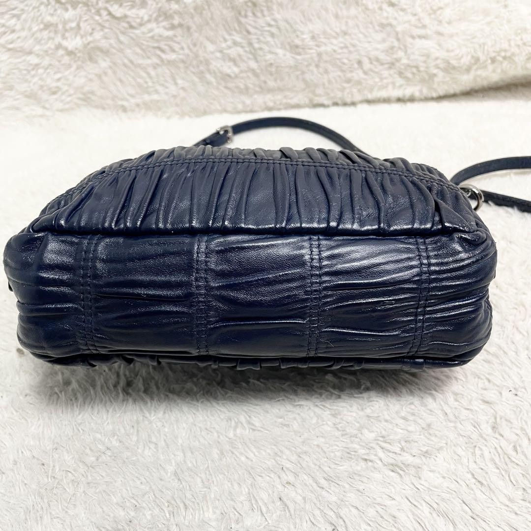 Prada Navy Gathered Shoulder Bag with Logo Hardware and Chain Strap