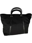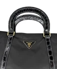 Prada Tessuto Nylon & Leather Trim Tote – Nero Excellent Pre-Owned Condition Includes Authenticity Card, Booklets, Dustbag & Removable Strap This is a classic Prada Tessuto Nylon Tote with croc-embossed leather top handles and vertical trims, crafted in black “Nero” nylon with gold-tone hardware throughout. It features: · Triangular Prada logo plaque at front · Double rolled leather handles with croc-embossed texture · Removable crossbody strap with gold-tone clasps · Protective gold-tone feet with Prada engraving · Top zip closure with signature branded pull · Interior zip pocket with Prada logo plaque · Logo jacquard lining in black · Serial number tag and RFID booklet (suggests post-2021 production) Measurements: · Handle Drop: 3" · Strap Drop (adjustable): approx. 12.75" · Height: 13.25" · Width: 14.75" · Depth: 5.5"