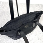 Prada Nylon Leather Tote Bag Black Triangular Logo Used Key Features - Brand: PRADA - Item: Tote bag / Handbag / Business bag - Model: Triangular logo design - Color: Black (Nero) - Material: Tessuto nylon with Pocono leather accents - Gender: Unisex (women's and men's) - Condition: Excellent, no noticeable scratches or stains; smooth zipper operation; handles in good condition; overall very clean - Size: Approximately 7.9" (20cm) high x 9.1" (23cm) wide x 6.7" (17cm) depth; handle length: 9.4" (24cm) - Includes: Guarantee card - Notes: No accessories are included unless noted in the title or product description. If you have any questions, please ask before purchasing. - Additional: All items are inspected and authenticated by our store, a member of the Japan Distribution Self-Regulation Association (AACD). Specifications Brand Prada Country Japan Exterior Material Leather Style Tote Bag Exterior Color Black Pattern Logo Accents Logo Color Black Material Nylon Product Description Item Title Prada Tote Bag Handbag Triangular Logo Nylon Leather Black Payment Supports managed payments Please pay within 5 days after auction is finished. About Us We are located in Japan. It's our pleasure to make you happy by proposing our recommend item. If you have any questions or request about items, please feel free to ask us. International Buyers - Please Note: -Import duties, taxes, and charges are not included in the item price or shipping charges. These charges are the buyer's responsibility. -Please check with your country's customs office to determine what these additional costs will be prior to bidding/buying. -These charges are normally collected by the delivering freight (shipping) company or when you pick the item up - do not confuse them for additional shipping charges. -We do not mark merchandise values below value or mark items as - gifts - The US and International government regulations prohibit such behavior. Thank you for your understanding.