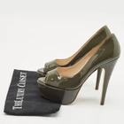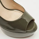 Wonderfully crafted shoes added with notable elements to fit well and pair perfectly with all your plans. Make these Prada platform pumps yours todayCertified by The Luxury Closet - This item has gone through a detailed authentication process overseen by our experts. We offer a lifetime guarantee of authenticity on all our items. Import duties, taxes and charges are not included in the item price. These charges are the buyers responsibility. Please check with your country’s customs office to determine what these additional cost will be prior to buying. Our eBay Store About Us Contact Us Add to Favorite Sellers Prada Olive Green Patent Leather Peep Toe Platform Pumps Size 36.5 $199.1 Wonderfully crafted shoes added with notable elements to fit well and pair perfectly with all your plans. Make these Prada platform pumps yours today Product Details Brand Color Green Dimensions Material Patent Leather Size 36.5 Outsole Width Outsole Length Heel Height Includes Certified by The Luxury Closet This item has gone through a detailed authentication process overseen by our experts. We offer a lifetime guarantee of authenticity on all our items. How We Check The in-house team of experts at The Luxury Closet is highly trained to verify the authenticity and the condition of the luxury products. They ensure that only 100% authentic items are put on sale.The evaluation process is unique with its own mix of assessment criteria and differs according to the category. Each item is evaluated based on the following combination of hallmarks, hardware, stitching, symmetry, material, craftsmanship, stamping, codes, hologram stickers, and packaging. Our authenticators also check if the items have been modified or amended (e.g., aftermarket diamonds, replaced batteries, repaired bags, etc.) International Buyers Import duties, taxes and charges are not included in the item price. These charges are the buyers responsibility. Please check with your country’s customs office to determine what these additional cost will be prior to buying.