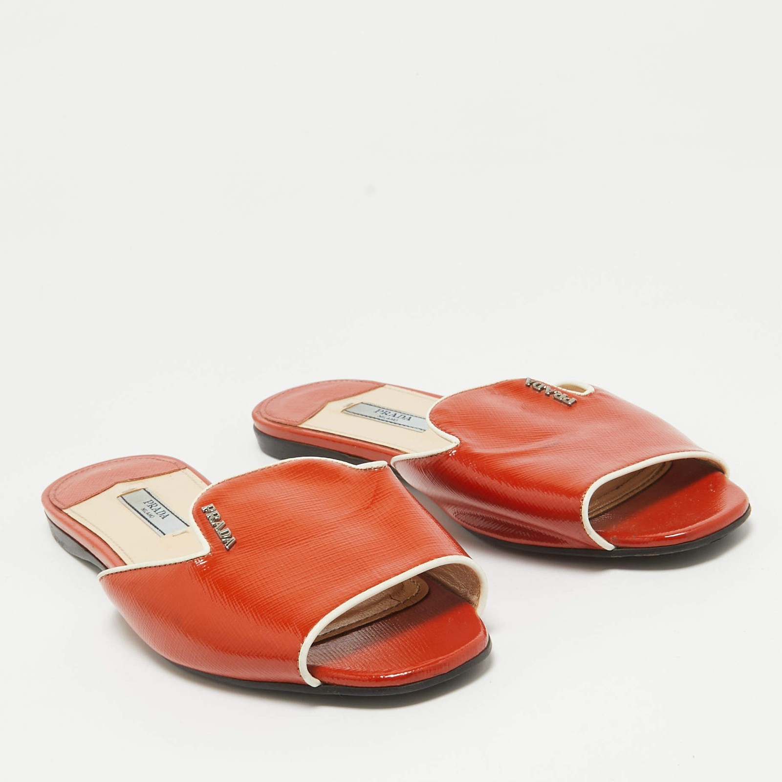 Our eBay Store About Us Contact Us Add to Favorite Sellers Prada Orange Patent Leather Flat Slides Size 36 Enhance your casual looks with a touch of high style with these designer slides. Rendered in quality material with a lovely hue adorning its expanse, this pair is a must-have! Product Details Brand Prada Color Orange Includes The Luxury Closet Packaging Outsole Length 23 cm Outsole Width 8 cm Size 36 Certified by The Luxury Closet This item has gone through a detailed authentication process overseen by our experts. We offer a lifetime guarantee of authenticity on all our items. How We Check The in-house team of experts at The Luxury Closet is highly trained to verify the authenticity and the condition of the luxury products. They ensure that only 100% authentic items are put on sale.The evaluation process is unique with its own mix of assessment criteria and differs according to the category. Each item is evaluated based on the following combination of hallmarks, hardware, stitching, symmetry, material, craftsmanship, stamping, codes, hologram stickers, and packaging. Our authenticators also check if the items have been modified or amended (e.g., aftermarket diamonds, replaced batteries, repaired bags, etc.) International Buyers Import duties, taxes and charges are not included in the item price. These charges are the buyers responsibility. Please check with your country’s customs office to determine what these additional cost will be prior to buying.