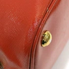 Size: 38 cm width/ 25 cm/ width 15 cm/ handle height 11 cm/ handle height: Orange accessories: Lotte Department Store Purchase Warranty/ Tech Prada (Prada) BL0812 Orange Saffiano Papaya Triangle Logo tote bag [Busan Centum Main Store]. The material is leather. Shop price: 2; 300; 000 won. There is a zipper pocket/regular pocket on the inside. [Note when purchasing] This product has loose edges and wrinkles on the body and corners. **Due to the nature of second-hand luxury goods, there may be stains not visible in the image. **