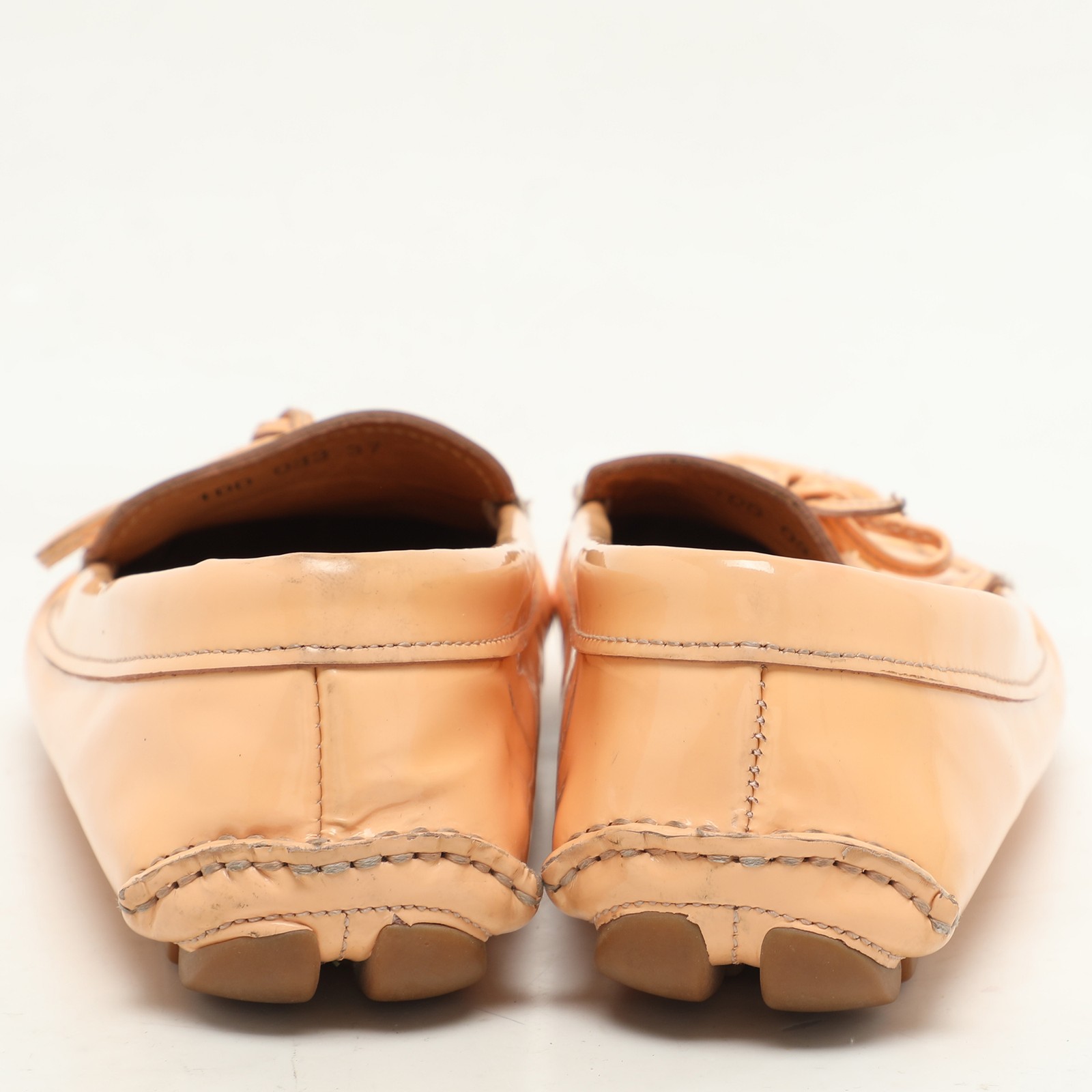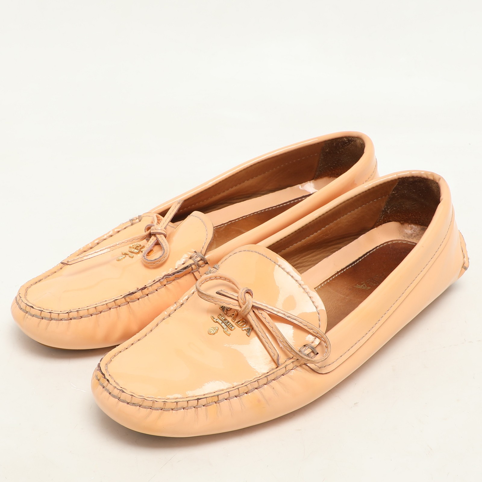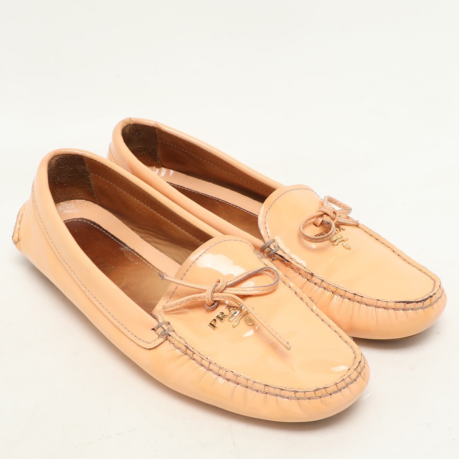 Refresh your wardrobe with these glossy peach patent leather loafers from Prada, featuring a clean silhouette and subtle logo accent. Ideal for springtime styling or adding warmth to neutral tones, they offer a refined pop of color with everyday ease.Certified by The Luxury Closet - This item has gone through a detailed authentication process overseen by our experts. We offer a lifetime guarantee of authenticity on all our items. Import duties, taxes and charges are not included in the item price. These charges are the buyers responsibility. Please check with your country’s customs office to determine what these additional cost will be prior to buying. Our eBay Store About Us Contact Us Add to Favorite Sellers Prada Peach Patent Leather Logo Loafers Size 37 $213.4 Refresh your wardrobe with these glossy peach patent leather loafers from Prada, featuring a clean silhouette and subtle logo accent. Ideal for springtime styling or adding warmth to neutral tones, they offer a refined pop of color with everyday ease. Product Details Brand Color Pink Dimensions Material Patent Leather Size 37 Outsole Width Outsole Length Heel Height Includes Certified by The Luxury Closet This item has gone through a detailed authentication process overseen by our experts. We offer a lifetime guarantee of authenticity on all our items. How We Check The in-house team of experts at The Luxury Closet is highly trained to verify the authenticity and the condition of the luxury products. They ensure that only 100% authentic items are put on sale.The evaluation process is unique with its own mix of assessment criteria and differs according to the category. Each item is evaluated based on the following combination of hallmarks, hardware, stitching, symmetry, material, craftsmanship, stamping, codes, hologram stickers, and packaging. Our authenticators also check if the items have been modified or amended (e.g., aftermarket diamonds, replaced batteries, repaired bags, etc.) International Buyers Import duties, taxes and charges are not included in the item price. These charges are the buyers responsibility. Please check with your country’s customs office to determine what these additional cost will be prior to buying.