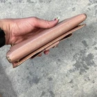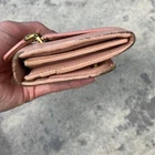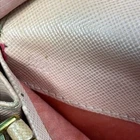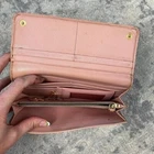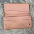 Prada Pink Saffiano Leather Bow Continental Long Wallet Detachable ID Holder Measures 7.5” x 4” Has some discoloration from rubbing. Staining in coin compartment. See photos.