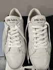 Elevate your casual shoe game with these authentic Prada sneakers. Crafted from high-quality quilted leather, the sneakers feature a sleek and stylish design that is perfect for any casual occasion. These sneakers are comfortable and durable, making them a great addition to your shoe collection. With a US shoe size of 8 and an EU shoe size of 38, they are the perfect blend of style and functionality and will make a great addition to your wardrobe. The shoes are in mint condition (worn for a few times), no scratches or defects.