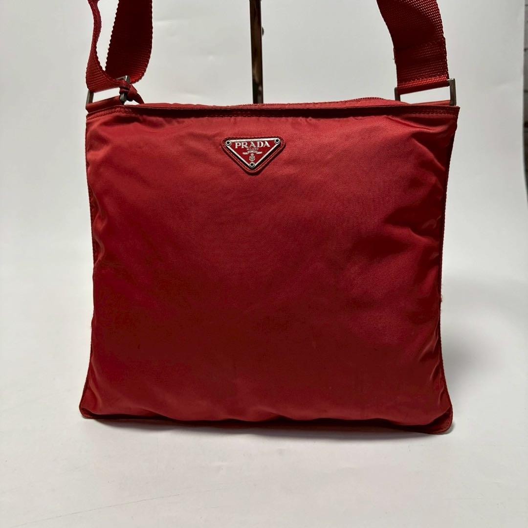 PRADA tessuto nylon pocono triangular logo plate shoulder bag, sacoche, crossbody bag with pouch. Vertical width 10.24 inches, horizontal width 11.81 inches, depth 0.20 inches, shoulder length up to approximately 47.24 inches. There is some feeling of use, but the condition is good and it can still be used for a long time. Color: Red. Material: tessuto nylon. No accessories. I promise fast shipping via FedEx or DHL as soon as possible! Import duties, taxes and charges are not included in the item price or shipping charges. These charges are the buyer’s responsibility. These charges are normally collected by the delivering freight (shipping) company or when you pick the item up - do not confuse them for additional shipping charges.