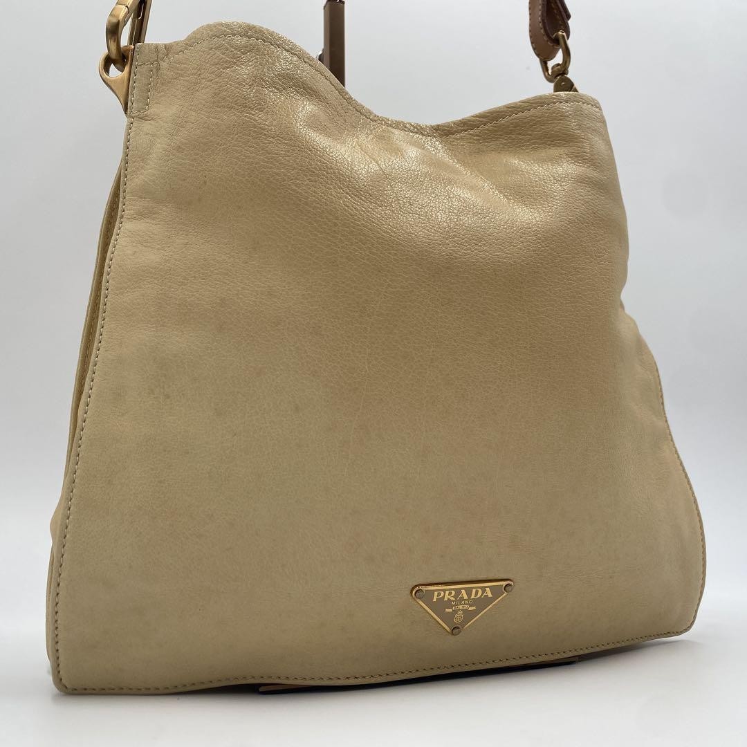 Prada Rare Leather Beige One Shoulder Hobo Handbag Used Key Features - Brand: Prada - Product Type: Handbag / Shoulder Bag / Hobo Bag - Model: Rare Prada Semi-Shoulder Leather Bag - Color: Beige, Ivory, Brown - Material: Genuine Leather - Size: Approximately 9.1 inches (23 cm) high, 9.8 inches (25 cm) wide, 1.2 inches (3 cm) deep, Handle height about 8.3 inches (21 cm) - Condition: Used with minor scratches and signs of wear; no major damage or stains. Please review photos for details. - Additional Info: Features a triangle logo plate with serial number 7 9. Authentic product from a licensed resale store. No accessories are included unless noted in the title or product description. If you have any questions, please ask before purchasing. Specifications Brand Prada Country Japan Exterior Material Leather Style Handbag Exterior Color Beige Color Beige Product Description Item Title Rare Prada Handbag One Shoulder Hobo Leather Beige Payment Supports managed payments Please pay within 5 days after auction is finished. About Us We are located in Japan. It's our pleasure to make you happy by proposing our recommend item. If you have any questions or request about items, please feel free to ask us. International Buyers - Please Note: -Import duties, taxes, and charges are not included in the item price or shipping charges. These charges are the buyer's responsibility. -Please check with your country's customs office to determine what these additional costs will be prior to bidding/buying. -These charges are normally collected by the delivering freight (shipping) company or when you pick the item up - do not confuse them for additional shipping charges. -We do not mark merchandise values below value or mark items as - gifts - The US and International government regulations prohibit such behavior. Thank you for your understanding.