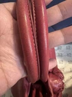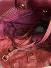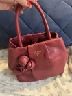 The PRADA Red Leather Handbag with Strap is a stylish and luxurious satchel/top handle bag designed for women. Made from high-quality leather with a bold red exterior color and gold hardware accents, this small-sized bag exudes elegance and sophistication. It might have signs of usage but the hardware still in great condition ; gold color. It comes with a strap as well. See pictures for more details.