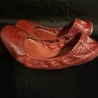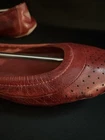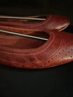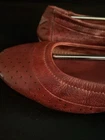 Beautiful Prada Dark Red Ballet Flats With Rubber Sole And All Leather Upper . The Shoe Size Is 38 Equal To 7 1/2 . There Are No Holes Or Tears There Is Darkening Of The Leather In Areas, It Appears Like They Were Polished And Due To The Softness Of The Leather In Areas it Darkened It . The Soles Are In Great Shape . I Took A lot Of Pictures So Please Check Them Out . I Tried To Include Everything In Pictures And Description, But I Left Out What A Great Pair Of Designer Shoes They Are .