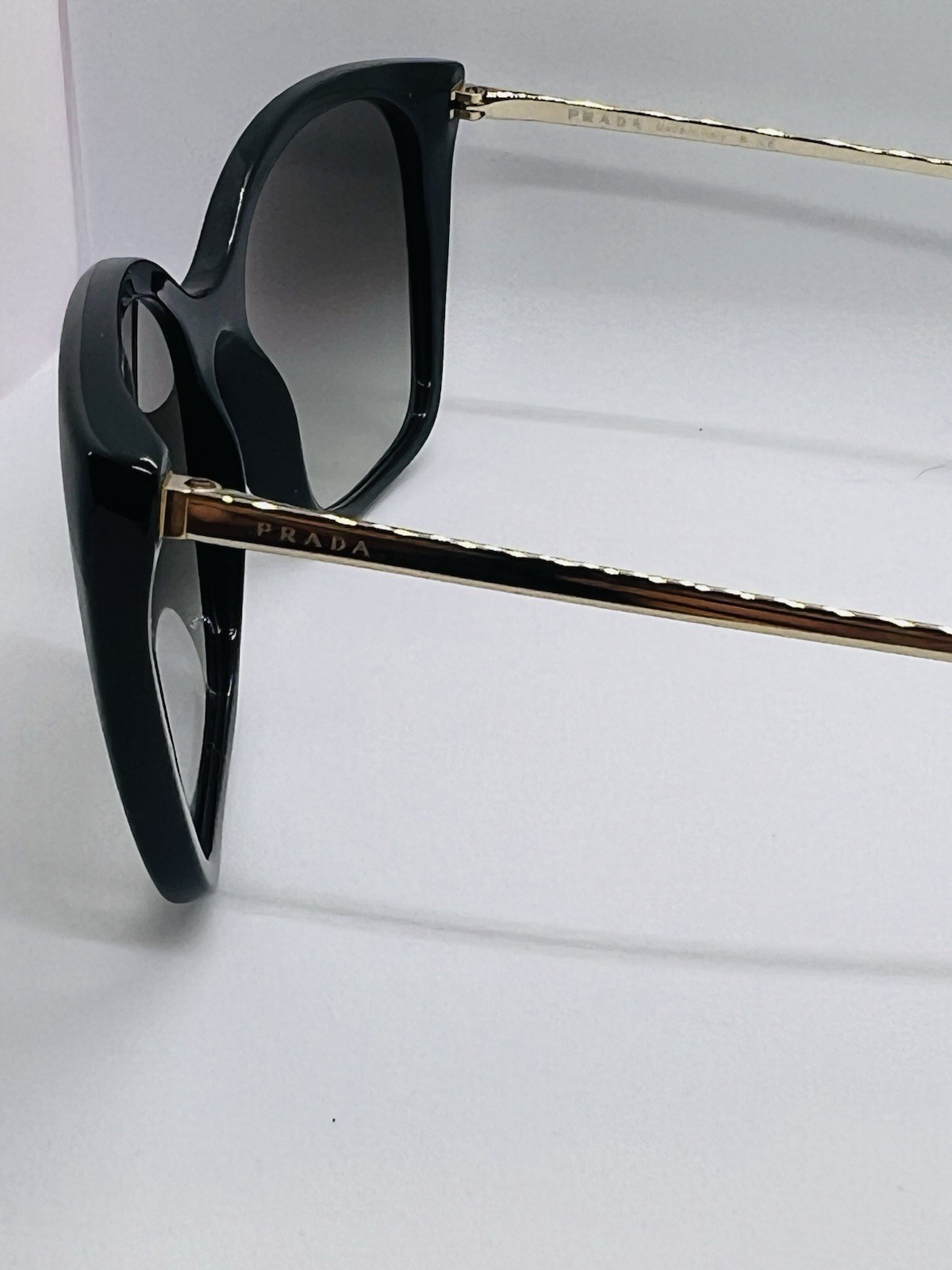 The NIB Prada SPR12X 4417 1AB-0A7 Black Cateye Polarized unisex Sunglasses 54mm are a stylish and high-quality accessory unisex. Made in Italy from black acetate, these sunglasses feature polarized lenses to provide protection and reduce glare. With the iconic Prada branding, these frames offer both fashion and functionality, making them a must-have for any fashionable unisex looking to elevate summer look.