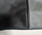 The Prada Saffiano Tote in black leather with a rare wide grey stripe is a stylish and spacious handbag for women. This large tote features a cross hatch pattern, zip closure, and double black handles. The exterior is made of leather with a nylon lining in black. Silver hardware adds a touch of elegance to this PRADA Saffiano model, making it a perfect accessory for any outfit. With a bag width of 20 inches, height of 15 inches, and depth of 8.5 inches, this tote is both practical and fashionable for everyday use. This bag is pre-owned in excellent condition. A few small scuffs on lower front and lower back of bag, shown in the photos. This bag does not have the dust bag, the nylon shoulder strap, or the luggage tag.