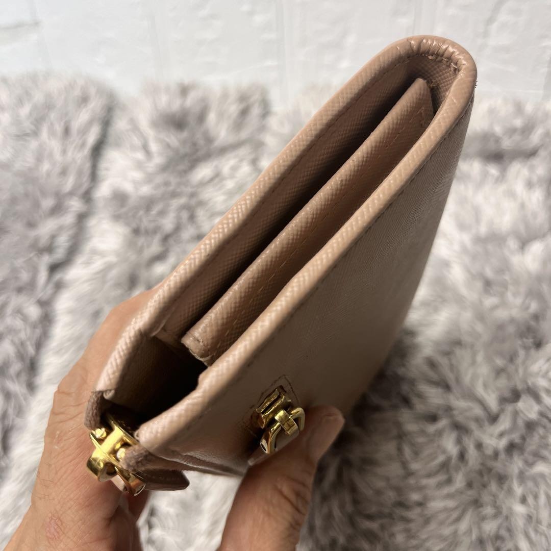 Prada Saffiano Leather Long Wallet Beige Zipper Bifold Used Key Features - Brand: Prada - Product Type: Round Zip Wallet with Ribbon and Saffiano Line - Model: Not specified - Color: Beige with strong pink-beige tone - Size: approximately 10 cm (3.9 inches) high x 19 cm (7.5 inches) wide x 2.5 cm (1 inch) depth - Condition: Used, cleaned, with repaired surface and accordion flaps; minor interior dirt; zipper flaps show slight wear; coin pocket has dirt; overall good condition with no major scratches or damage; logo is clean. - Additional info: Water-repellent coating applied; color close to original; no accessories included unless noted. - Please read all condition details carefully. If you have questions, ask before purchasing. Specifications Brand Prada Country Japan Color Beige Material Leather Product Description Item Title Prada L-Shaped Zipper Long Wallet Saffiano Metal Logo Beige Payment Supports managed payments Please pay within 5 days after auction is finished. About Us We are located in Japan. It's our pleasure to make you happy by proposing our recommend item. If you have any questions or request about items, please feel free to ask us. International Buyers - Please Note: -Import duties, taxes, and charges are not included in the item price or shipping charges. These charges are the buyer's responsibility. -Please check with your country's customs office to determine what these additional costs will be prior to bidding/buying. -These charges are normally collected by the delivering freight (shipping) company or when you pick the item up - do not confuse them for additional shipping charges. -We do not mark merchandise values below value or mark items as - gifts - The US and International government regulations prohibit such behavior. Thank you for your understanding.