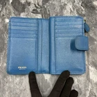 This Prada Saffiano wallet is absolutely stunning! The light blue color is unique and eye-catching, while the leather feels luxurious and durable. The size is perfect for everyday use, fitting cards and cash comfortably. It's in excellent condition with no visible wear—zippers and hardware work smoothly. The authenticity verification gives me peace of mind. A rare find that elevates any outfit!