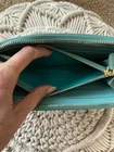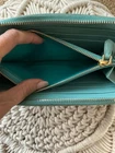 Beautiful Authentic Prada This beautiful wallet is in very good condition with minimal wear. Coin department shows some residue . No tears or staining. The color is more a Tiffany blue than what is showing up in the pictures. Overall, a great wallet. Please see all pictures.