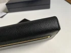 Prada Saffiano Metal Leather Bifold Long Wallet Nero Black Snap closure Two bill compartments Four interior pockets Ten credit card slots Internal coin pocket with zipper External coin pocket with zipper Moire and Saffiano leather lining Detachable badge holder 7.48"L x 3.54"W x 1.18"H Made in Italy. AUTHENTIC GUARANTEE. This comes with its original box and the authenticity certificate card. Condition: Almost as new. Got it as a gift and it stays in the box all the time because I didn’t use it much. No scratches on hardware. There’s a few very slight crashes at the bottom and one on the top edge - all very hard to see. Please see photos before buying. ** FINAL SALE. NO RETURN **