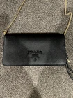 This Prada wristlet is a must-have! The sleek Saffiano leather feels luxurious, and the gold hardware adds just the right amount of glam. Perfect size for essentials—fits my phone, cards, and lipstick with room to spare. The chain strap makes it easy to wear crossbody or as a clutch. Love that it comes brand new with original packaging—feels like a true luxury purchase. The magnetic closure keeps everything secure while looking effortlessly chic. Goes with everything from jeans to evening wear!