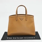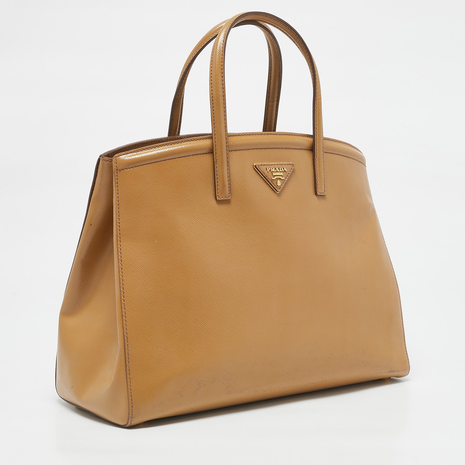 Thoughtful details, high quality, and everyday convenience mark this tote for women by Prada. The bag is sewn with skill to deliver a refined look and an impeccable finish.Certified by The Luxury Closet - This item has gone through a detailed authentication process overseen by our experts. We offer a lifetime guarantee of authenticity on all our items. Import duties, taxes and charges are not included in the item price. These charges are the buyers responsibility. Please check with your country’s customs office to determine what these additional cost will be prior to buying. Our eBay Store About Us Contact Us Add to Favorite Sellers Prada Tan Saffiano Vernice Leather Parabole Tote $612.7 Thoughtful details, high quality, and everyday convenience mark this tote for women by Prada. The bag is sewn with skill to deliver a refined look and an impeccable finish. Product Details Brand Color Tan Dimensions Height: 26 cm, Width: 14 cm, Length: 34 cm Material Patent Leather Size Outsole Width Outsole Length Heel Height Includes The Luxury Closet Packaging Certified by The Luxury Closet This item has gone through a detailed authentication process overseen by our experts. We offer a lifetime guarantee of authenticity on all our items. How We Check The in-house team of experts at The Luxury Closet is highly trained to verify the authenticity and the condition of the luxury products. They ensure that only 100% authentic items are put on sale.The evaluation process is unique with its own mix of assessment criteria and differs according to the category. Each item is evaluated based on the following combination of hallmarks, hardware, stitching, symmetry, material, craftsmanship, stamping, codes, hologram stickers, and packaging. Our authenticators also check if the items have been modified or amended (e.g., aftermarket diamonds, replaced batteries, repaired bags, etc.) International Buyers Import duties, taxes and charges are not included in the item price. These charges are the buyers responsibility. Please check with your country’s customs office to determine what these additional cost will be prior to buying.