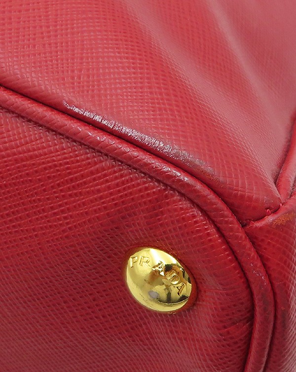 Size: 38 cm width/ 26 cm/ width 17 cm/ handle height 12 cm/ handle height : red accessories: warranty card (Shilla Duty Free) Prada ( Prada) BN1844 SAFFIANO LUX (Saffiano Lux) red triangular gold logo tote bag [Gangnam Main Store]. The store price is 2; 280; 000 won. The material is leather. There is a zipper pocket/small multi-use storage pocket on the inside. **Due to the nature of second-hand luxury goods, there may be stains not visible in the image. **
