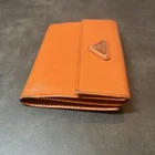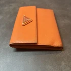 Absolutely love this wallet! The vibrant orange color is stunning and the saffiano leather feels so luxurious. Perfect size for daily use and the tri-fold design keeps everything organized. The triangle logo adds that classic Prada elegance. Highly recommend!