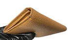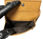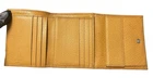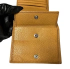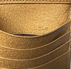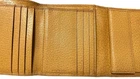 Does come with a COA!! Good used condition, Measures approximately 4.4" x 3.6" when closed. Unsnaps and unfolds to reveal 6 card slots with 2 slightly larger slots behind them, one long bill / cash slot and one snap closure coin compartment. Does have flaws on corners and front and back of wallet. Inside great condition