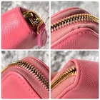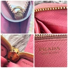 Prada Saffiano Round Zip Wallet Peach Pink Metal Logo Used Key Features - Brand: Prada - Product: Round zipper wallet with metal logo, saffiano leather line - Color: Pink tones - Size: approximately 4.33 inches (11 cm) high x 7.87 inches (20 cm) wide x 0.79 inches (2 cm) depth - Condition: Used, cleaned, repaired, with color coating and water-repellent treatment - Features: Thick, sturdy, weighty, with minor signs of use such as zipper and interior stains; external flap replaced with non-original part matching original color; logo hardware has minor scratches but is in good condition - Additional info: No accessories are included unless noted in the title or product description. If you have any questions, please ask before purchasing. Specifications Brand Prada Country Japan Theme Metal Accents Logo Pattern Logo Product Description Item Title Prada Metal Plate Ribbon Saffiano Round Zip Peach Pink Payment Supports managed payments Please pay within 5 days after auction is finished. About Us We are located in Japan. It's our pleasure to make you happy by proposing our recommend item. If you have any questions or request about items, please feel free to ask us. International Buyers - Please Note: -Import duties, taxes, and charges are not included in the item price or shipping charges. These charges are the buyer's responsibility. -Please check with your country's customs office to determine what these additional costs will be prior to bidding/buying. -These charges are normally collected by the delivering freight (shipping) company or when you pick the item up - do not confuse them for additional shipping charges. -We do not mark merchandise values below value or mark items as - gifts - The US and International government regulations prohibit such behavior. Thank you for your understanding.