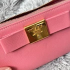 This Prada Saffiano wallet is a gorgeous blend of style and durability! The luxurious peach pink leather with the metal logo gives it a chic, high-end look. Despite being pre-owned, it’s been meticulously cleaned and treated, so it feels fresh and sturdy. The size is perfect—roomy enough for essentials but still compact. Minor wear adds character, and the replaced flap blends seamlessly. A fantastic way to own Prada without the brand-new price tag!