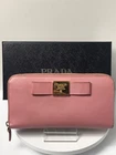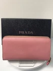 -Condition: Pre-owned ✅ ; in good condition -Comes with box ❤️ -Wear on corners/edges & zipper pull/ribbon; light coin residue/interior small marks -Color: Pink 💕 -Material: Saffiano Leather -PRADA 😍🔥 -Credit card slots -Separated Compartments -Gold Hardware -She’s simply a stunner!!! 🤩❤️🔥✨ -Reasonable offers are welcome 🤗