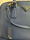 Prada tote/crossbody. Cromo Saffiano lux leather. Good tone hardware. Rolled handle and single adjustable shoulder strap. Logo Jacquard lining and five interior pockets. Zip closure at top. Protective feet at base. Includes dust bag. 12.25”w x 8.5”h x5.5”d 23.25 shoulder strap