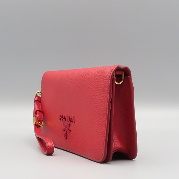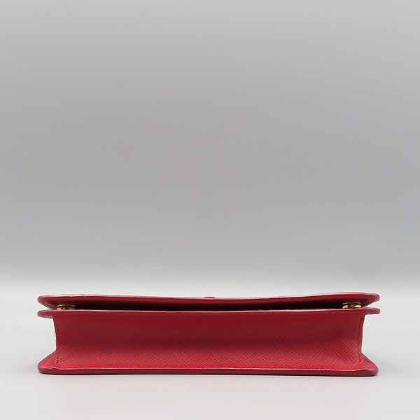 Size: 18.5 CM width/ 9.5 cm/ width 4 cm/ handle height 53cm Color: Red Accessories: Warranty (20.06.23)/dust/ case Prada (Prada) 1DH029 SAFFIANO METAL red color saffiano gold logo mini chain shoulder bag and clutch [Jamsil store]. Store price: 1; 460; 000 won. The material is leather. There are 2 zipper pockets on the inside. Can also be used as a clutch bag. **Due to the nature of second-hand luxury goods, there may be stains not visible in the image. **