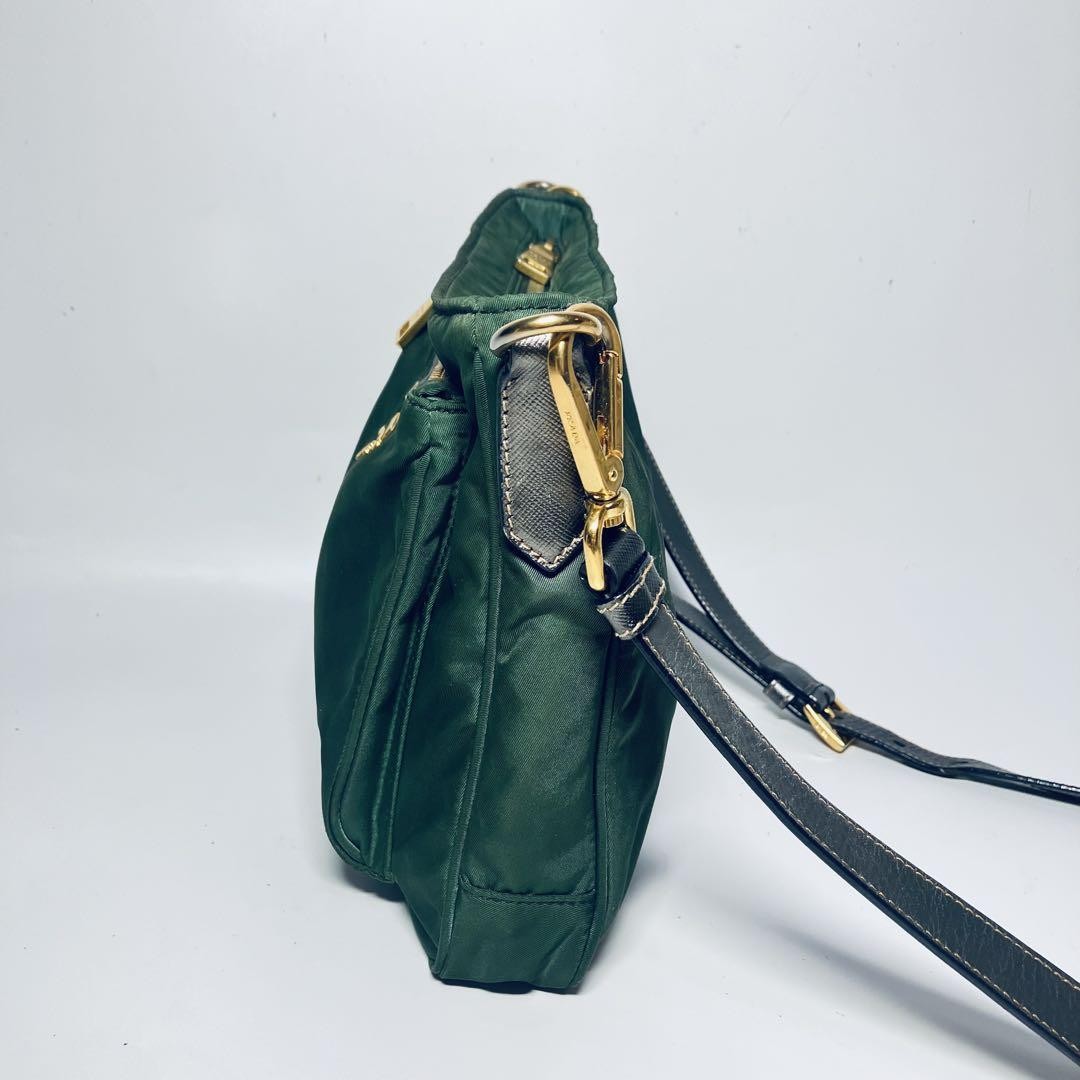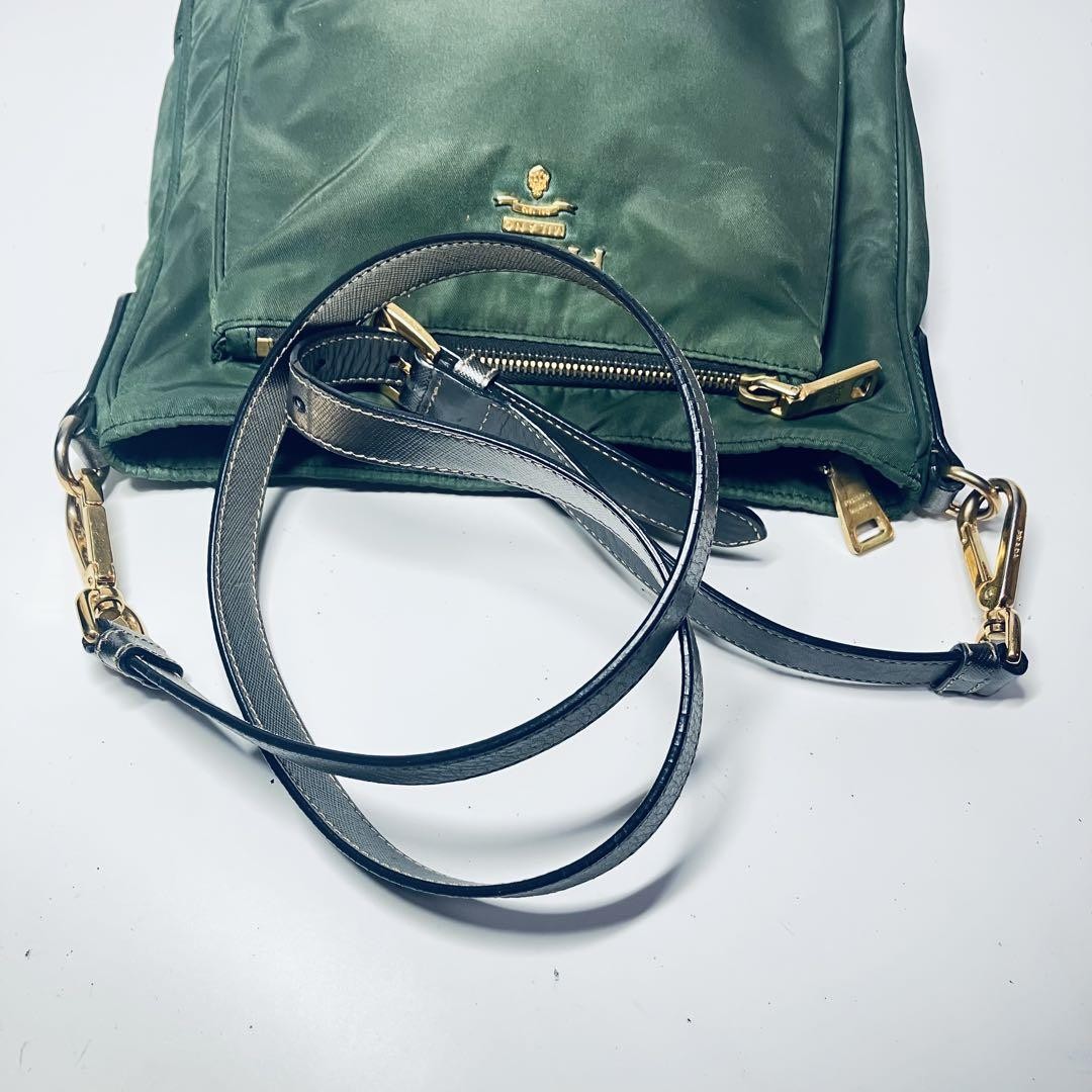 Rare Color Prada Shoulder Bag With Gold Hardware Logo Key Features - Stylish unisex mini shoulder bag with a simple design, perfect for crossbody wear. - Unique deep green nylon fabric with gold hardware, making it a rare find. - Dimensions: H 19cm x W 23cm x D 4cm; Shoulder strap length: 105-115cm. - Condition: Slight fading on the nylon exterior; interior clean with no tears or stains; minor scratches on hardware; leather strap shows light wrinkles. - Features: Zipper closure, interior and exterior zipper pockets. - Authenticity guaranteed through professional appraisal; purchased from a trusted market. - Comes with simple packaging; cleaning and maintenance completed. - Item Specifics: - Brand: Not specified - Material: Nylon, Leather - Color: Deep Green - Style: Crossbody/Shoulder Bag - Closure: Zipper - Size: 19cm x 23cm x 4cm - Strap Length: 105-115cm Specifications Brand Prada Country Japan Product Description Description Thank you for your interest. This item is not new, but a used item that was given away. Please check the photos for the condition of the item. Please understand that the condition of the item is subjective and the standard of evaluation and feeling may vary from person to person, so please be aware that this is a used item before bidding. Please check the photos for the condition of the item, such as scratches and stains. To prevent problems, please feel free to contact us if you have any questions about the size or other details of the item. We will be happy to adjust the price. We will do our best to ship your order as soon as possible. We will do our best to ship as soon as possible, but there may be delays during the busy harvest season. Remarks All the products we sell are obtained and sold by pawn shops that are authorized brands, so all the products we handle have been authenticated to meet our strict standards for authenticity, so please buy with confidence. Payment Supports managed payments Please pay within 5 days after auction is finished. About Us We are located in Japan. It's our pleasure to make you happy by proposing our recommend item. If you have any questions or request about items, please feel free to ask us. International Buyers - Please Note: -Importduties, taxes, and charges are not included in the item price or shipping charges. These charges are the buyer's responsibility. -Please check with your country's customs office to determine what these additional costs will be prior to bidding/buying. -These charges are normally collected by the delivering freight (shipping) company or when you pick the item up - do not confuse them for additional shipping charges. -We do not mark merchandise values below value or mark items as - gifts - The US and International government regulations prohibit such behavior. Thank you for your understanding