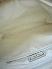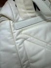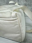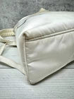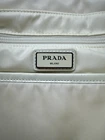 Designer: Prada Model: Signaux Printed Nylon Backpack Condition: Fair. Corner wear, stains, creases and scuffs. Stains and wear on interior fabric. Stains on handle straps. Accessories: Adjustable shoulder strap. Measurements: 13 height x 14.5 width x 6.5 depth (inches) Exterior Material: Nylon Exterior Color: White Interior Material: Nylon Interior Color: White Hardware Color: Silver