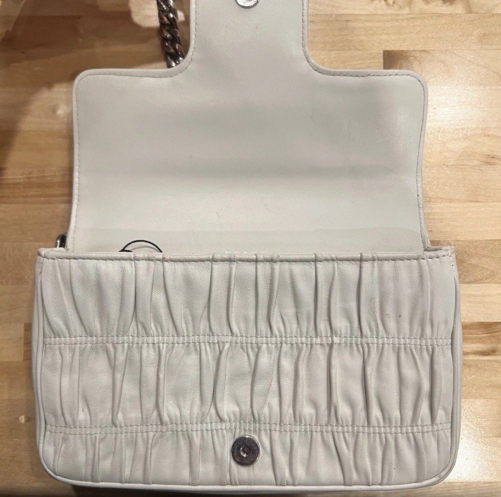 Love this bag! The white leather with that gorgeous diamond pattern is so chic. Perfect size for essentials, and the chain strap adds such a luxe touch. Goes with everything and feels so high quality.