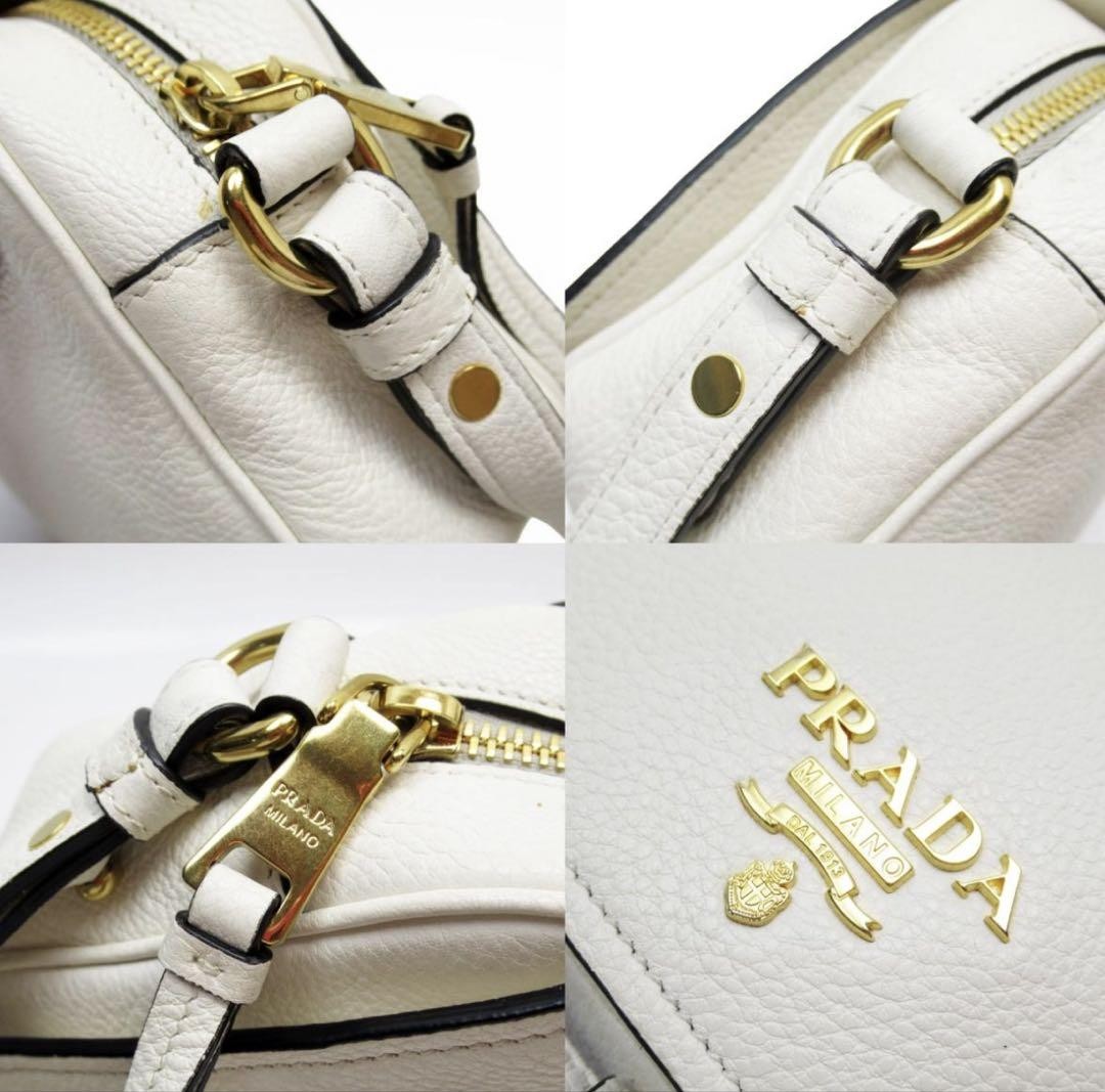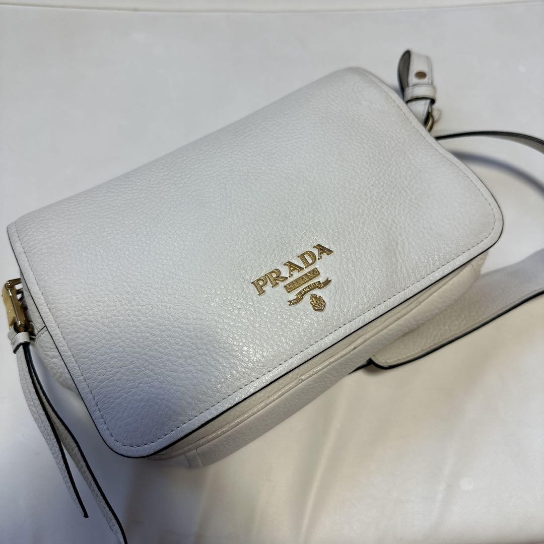 PRADA flap shoulder bag, white color. The size is: Height: 5.91 inches x Width: 8.66 inches x Depth: 2.36 inches. Shoulder strap length: 41.34 inches. Due to the white genuine leather, there is some slight color transfer; please check the photos. There is a feeling of use in the strap area, but there are no scuffs. No accessories are included. I promise fast shipping via FedEx or DHL as soon as possible! Import duties, taxes and charges are not included in the item price or shipping charges. These charges are the buyer’s responsibility. These charges are normally collected by the delivering freight (shipping) company or when you pick the item up - do not confuse them for additional shipping charges.